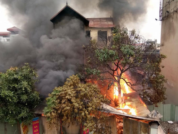 Như Pháp luật Plus đã thông tin, tại thời điểm trên, người dân xung quanh nghe thấy nhiều tiếng nổ lớn kèm theo lửa và khói phát ra nghi ngút từ cửa hàng chăn ga gối đệm và lan nhanh sang ngôi nhà 3 tầng ngay cạnh.