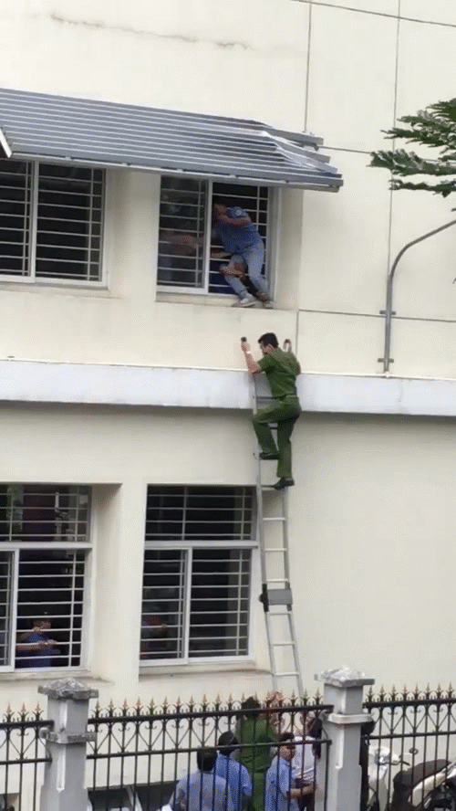Nhận được thông tin, lực lượng chức năng đã có mặt vận động nam sinh xuống đất, tuy nhiên người này không nghe theo mà tiếp tục đứng ở khung cửa sổ tầng 2. Sau đó, một số người đã tiếp cận từ bên trong, giữ người này lại đồng thời một cảnh sát từ dưới đất bắc thang đưa người này vào bên trong an toàn.