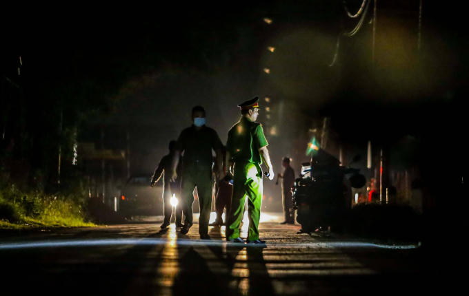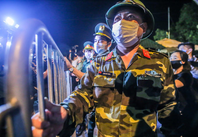 Lực lượng chức năng có mặt để chuẩn bị công tác cho buổi lễ công bố hết cách ly.