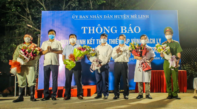 Ông Đoàn Văn Trọng, Chủ tịch UBND huyện Mê Linh, cho biết: "Sau thời gian cách ly 28 ngày do dịch Covid-19, ngày 6-5, vào đúng thời khắc 0 giờ, huyện Mê Linh tổ chức công bố Quyết định kết thúc thiết lập vùng cách ly y tế đối với thôn Hạ Lôi, xã Mê Linh".