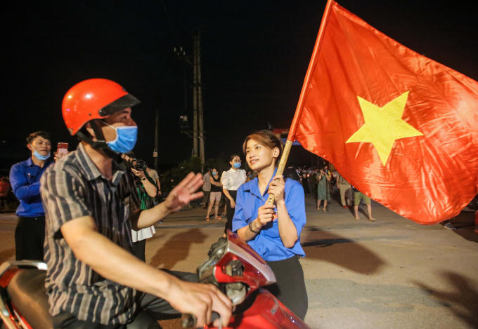 Nhiều người vui mừng cầm cờ tổ quốc trên tay hô vang "Hạ Lôi chiến thắng".
