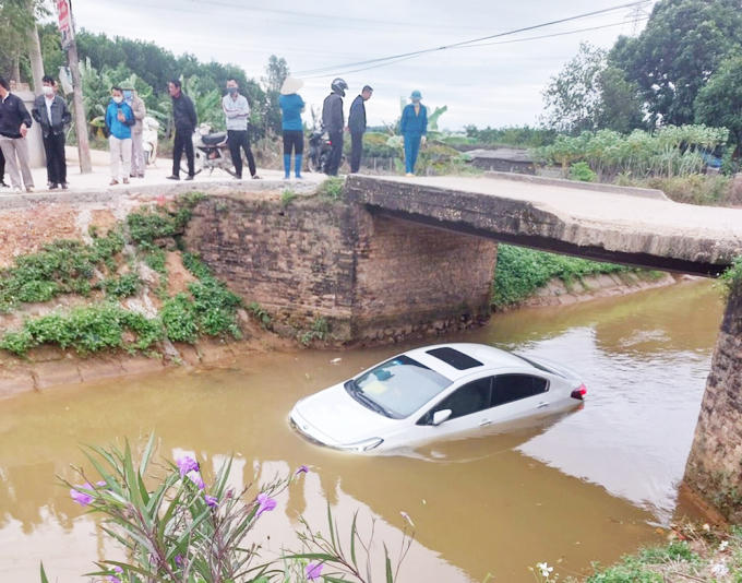 Cụ thể, sáng 22/11, ông Nguyễn Văn B điều khiển xe ô tô 4 chỗ màu trắng BKS 30H - 028.00 qua cầu Cẩm Trang nối hai thôn Nội Xuân và Cẩm Trang đoạn qua kênh Trôi. Lúc này, trên xe còn có con trai ông B. Khi ô tô đi qua chưa hết cầu thì bị rơi xuống kênh. Ông B và con trai không bị thương tích nhưng ô tô bị hư hỏng nặng, phải nhờ cứu hộ trục vớt.