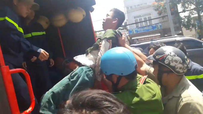 Nhận được tin báo, cơ quan công an cùng lực lượng chức năng đã nhanh chóng có mặt tại hiện trường. Tuy nhiên, phải 2 giờ đồng hồ sau đó mới có thể tiếp cận, khống chế được nam thanh niên trên và đưa xuống đất an toàn.