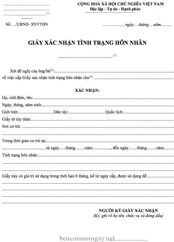 - Giấy xác nhận tình trạng hôn nhân;