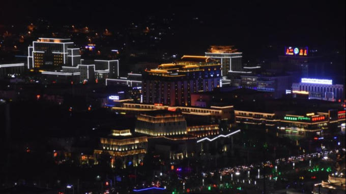 Cảnh sắc về đêm của thành phố Ngọc Thụ, tỉnh Thanh Hải – nơi Hương Giang cùng các bạn dừng chân khi tham gia Vòng chung kết YICMG 2019. Ảnh: NVCC