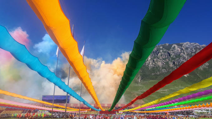 Những dải cờ phướn nhiều màu sắc giúp lễ hội đua ngựa càng thêm rực rỡ. Ảnh: NVCC