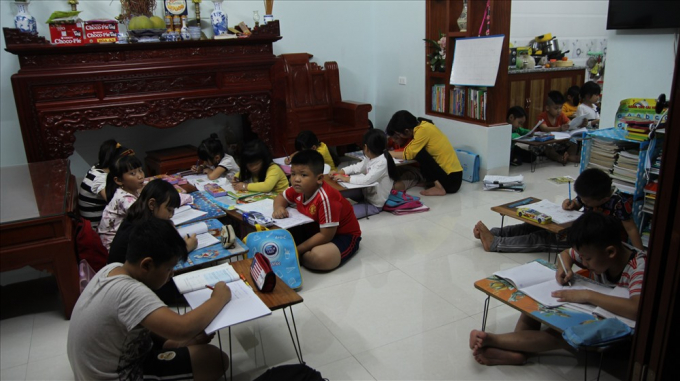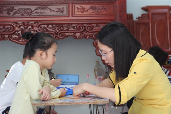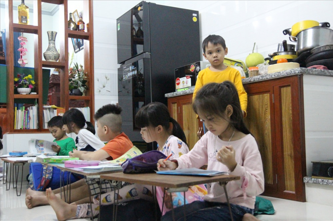Cứ đến ca tối lại phải chia làm hai lớp vì sợ nhà không đủ chỗ cho học sinh. Còn hai buổi sáng chiều, chỉ cần không phải đến trường, các em sẽ tự đến nhà để cô kèm thêm hoặc giao thêm tài liệu học tập.