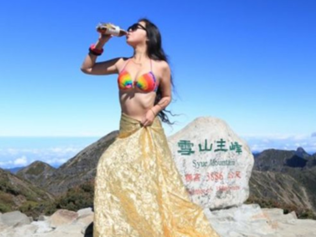 Cô gái này khá nổi tiếng ở Đài Loan bởi cô thường xuyên leo núi trong trang phục đồ bơi thiếu vải.
