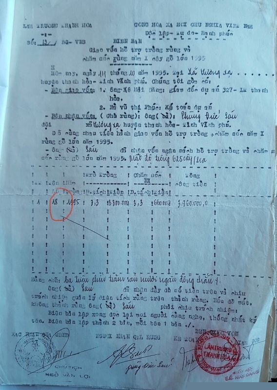 Được biết, năm 1994 ông Phùng Đức Sáu (khu 5, xã Hương Xạ, huyện Hạ Hòa, tỉnh Phú Thọ), được Lâm trường Thanh Hòa (nay là Kiểm lâm huyện Hạ Hòa) giao 08 lô đất (từ lô số 4 đến lô số 11), với diện tích 25,1ha đất để trồng rừng phòng hộ và bảo vệ rừng; đồng thời giao khoán 01 lô đất số 18 với diện tích 3,3ha là đất 50 năm nhưng hợp đồng giao khoán là trồng rừng và cây gỗ lớn. Khi mới nhận tất cả đều là đất trống đồi trọc, nhưng đến nay khu rừng phòng hộ do ông Sáu trồng, quản lý và bảo vệ đã lên xanh.