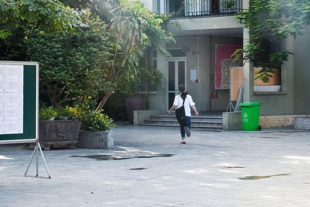 Những bước chân vội vã của thí sinh khi sát giờ phát đề.