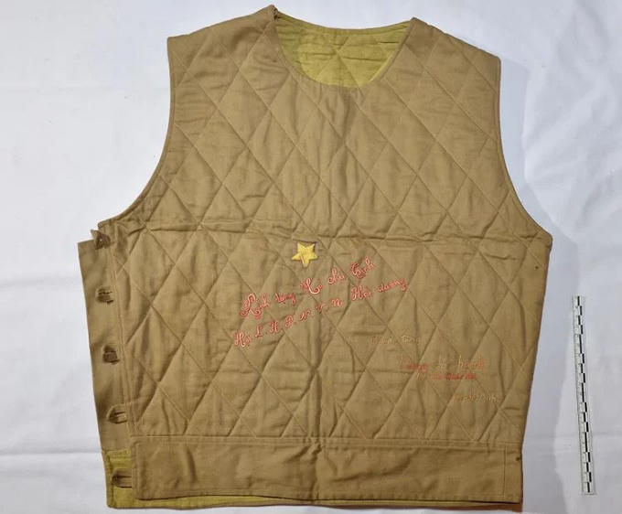 Chiếc áo trấn thủ do Hội Liên hiệp Phụ nữ Việt Nam tỉnh Hải Dương tặng Chủ tịch Hồ Chí Minh năm 1950. Trên áo có thêu ngôi sao vàng và dòng chữ: “Kính tặng Hồ Chủ Tịch- Hội Liên hiệp Phụ nữ tỉnh Hải Dương”. Bác Hồ Chí Minh sau khi nhận áo đã cho thêu thêm bên dưới dòng chữ: “Chuyển tặng Vương Chí Thành, đại biểu Quốc hội” và bên dưới ký tên Chủ tịch Hồ Chí Minh.
