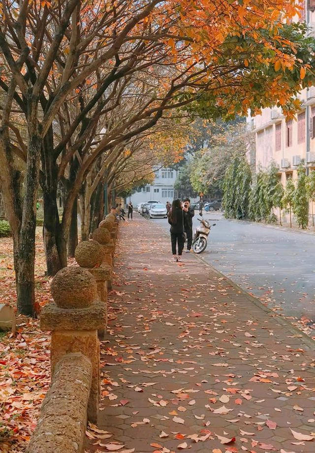 Cứ mỗi độ Hà Nội vào mùa cây thay lá, các bạn trẻ lại đổ về con đường tình yêu thơ mộng trong khuôn viên trường ĐH Sư phạm, để ghi lại những khoảnh khắc tuyệt đẹp bên hàng lộc vừng vàng ruộm.