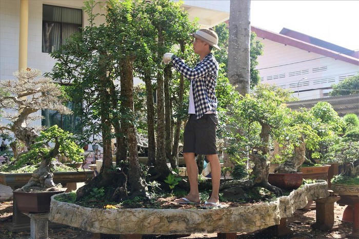 Ông Nguyễn Tấn Sanh (TP. Buôn Ma Thuột, Đắk Lắk) đang sở hữu một dàn cây cảnh lên đến hơn 250 cây đủ các loại như mai, lộc vừng, cây trắc, mai chấn thủy... rất có giá trị thẩm mỹ lẫn kinh tế.