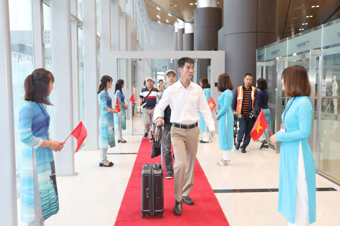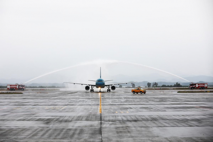 Ngay sau đó, vào lúc 16 giờ 35’, chuyến bay đầu tiên khởi hành từ sân bay quốc tế Vân Đồn đến Đà Nẵng mang số hiệu VN 1681 đã cất cánh, chở theo 139 hành khách.
