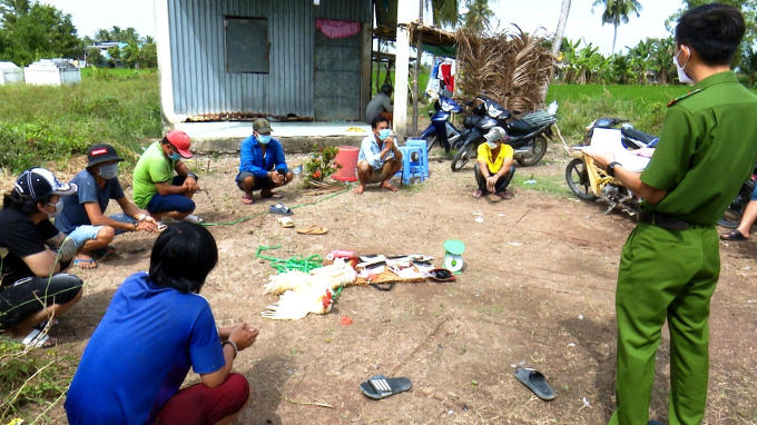 Đồng thời, bắt quả tang các đối tượng gồm: Phạm Văn Khởi (sinh năm 1979); Võ Ngọc Âu (sinh năm 1983); Huỳnh Văn Nữa (sinh năm 1974); Trần Minh Khánh (sinh năm 1996); Mai Văn Trọng (sinh năm 1978); Lê Trường Giang (sinh năm 1996) và Nguyễn Minh Quân (sinh năm 1989), cùng ngụ thị trấn Châu Hưng, huyện Vĩnh Lợi, tỉnh Bạc Liêu.