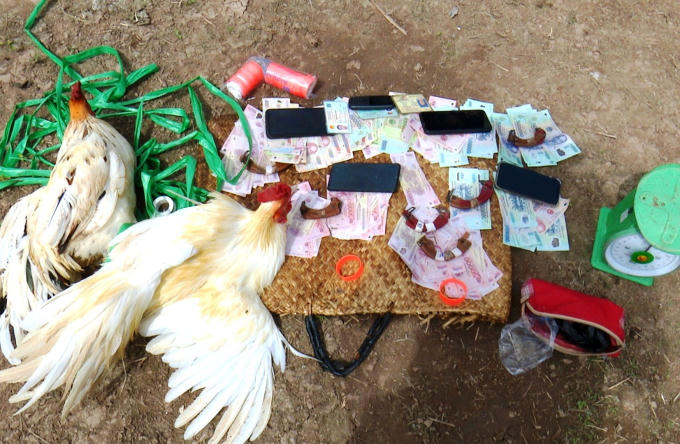 Tại hiện trường, lực lượng Công an thu giữ 2 con gà đá, 5 điện thoại di động và số tiền 31 triệu đồng cùng một số tang vật khác có liên quan.