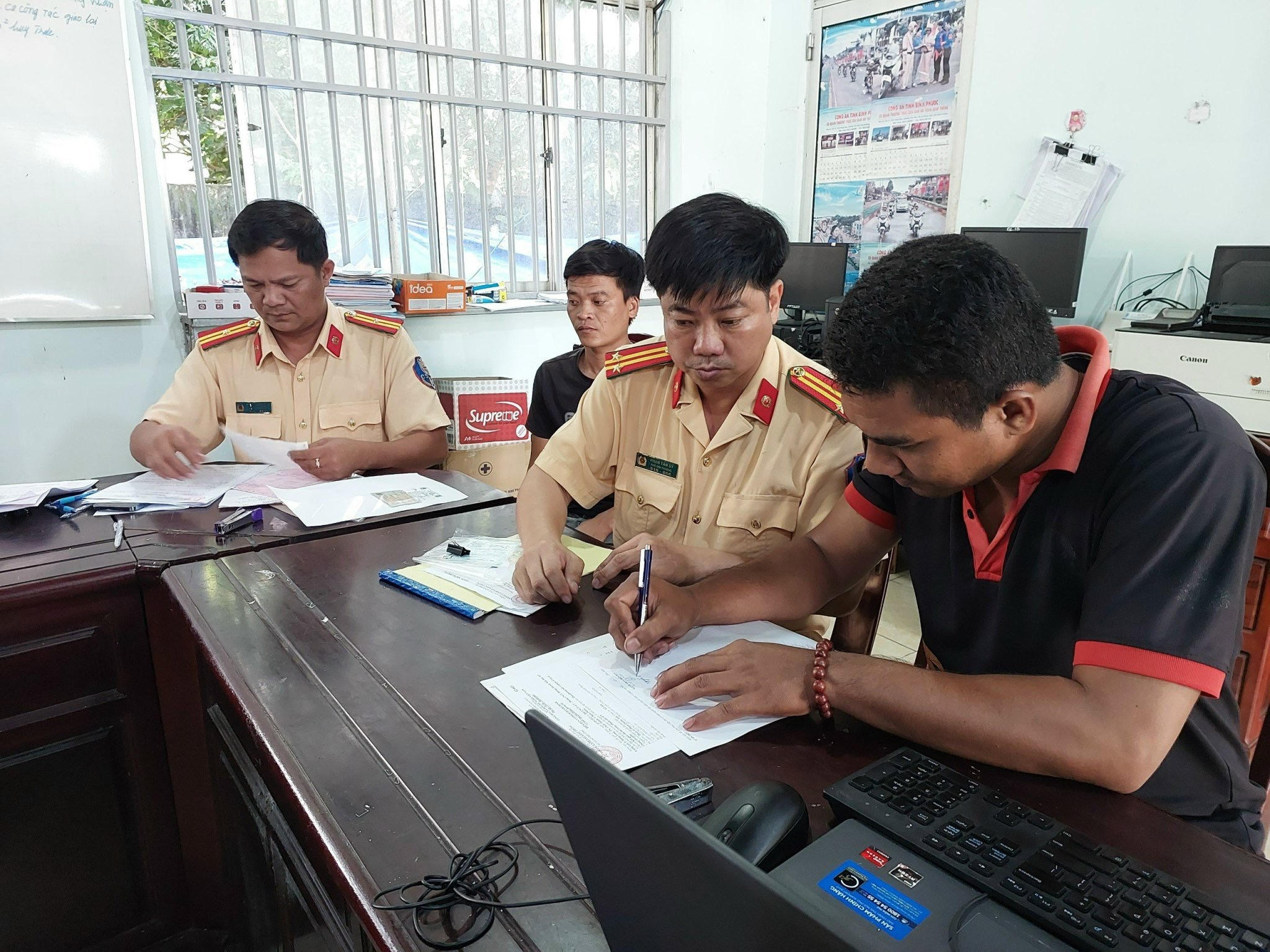 CSGT Công an tỉnh lập biên bản các xe vi phạm