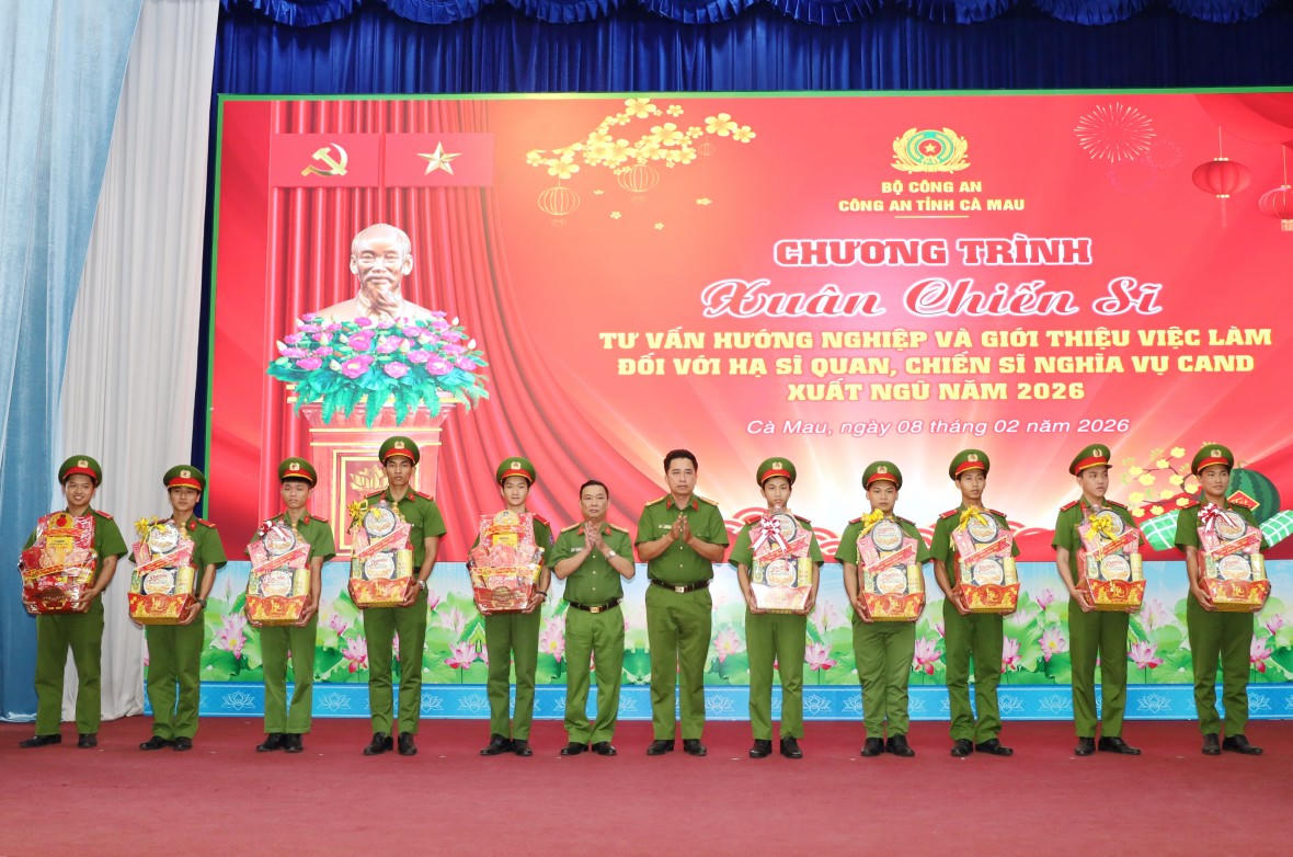 Công an tỉnh Cà Mau vừa tổ chức chương trình “Xuân chiến sĩ – Tư vấn hướng nghiệp và giới thiệu việc làm đối với hạ sĩ quan, chiến sĩ nghĩa vụ Công an nhân dân xuất ngũ năm 2026”, nhằm trang bị kiến thức, định hướng nghề nghiệp và tạo cầu nối việc làm cho chiến sĩ sau khi hoàn thành nghĩa vụ.