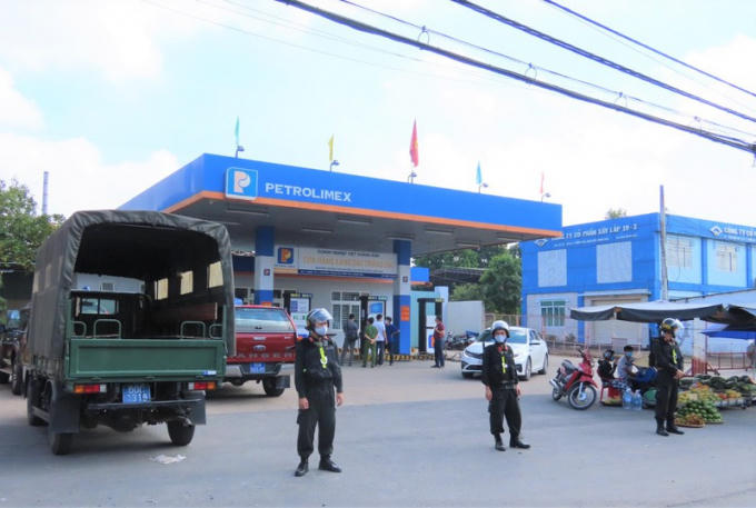 Lực lượng chức năng đang phong tỏa trạm xăng dầu 233 nằm trên QL1A (Đồng Nai).
