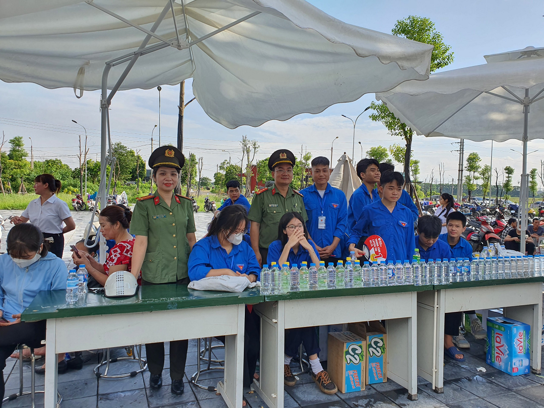 Công an huyện Đông Anh phối hợp Đoàn Thanh niên huyện tiếp sức mùa thi.