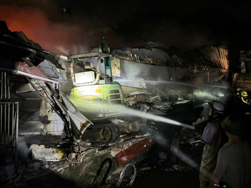 Ngay lập tức, lực lượng Cảnh sát PCCC&CNCH đã khẩn trương khai thác nguồn nước; triển khai các mũi tấn công khoanh vùng, ngăn cháy lan.