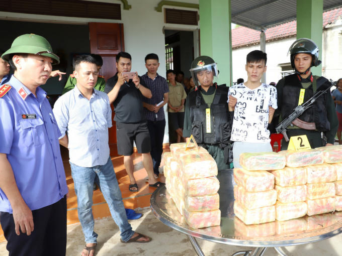 Tiếp đó tại địa bàn xã Sơn Kim 1, huyện Hương Sơn, phòng Cảnh sát ĐTTP về ma túy phối hợp với Biên phòng, Hải Quan bắt quả tang 2 đối tượng gồm Trần Hải Nghĩa (SN 1985, trú tại tỉnh Thái Nguyên) và Hoàng Bá Mít (SN1971, trú tại tỉnh Hải Dương) thu giữ 1 bánh heroin, 1kg ketamin cùng một số tang vật liên quan đến vụ án.