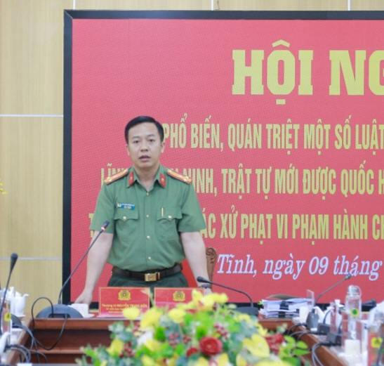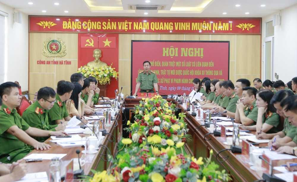 Phó Giám đốc Công an tỉnh Hà Tĩnh yêu cầu Công an các đơn vị, địa phương quán triệt đẩy đủ những nội dung mới của luật liên quan đến ANTT vừa được Quốc hội thông qua đến cán bộ chiến sỹ để nắm vững, thực hiện, đồng thời đẩy mạnh công tác tuyên truyền tới quần chúng nhân dân trên địa bàn, góp phần thực hiện nghiêm các chủ trương, đường lối của Đảng, chính sách, pháp luật của Nhà nước, đảm bảo tình hình ANTT trên địa bàn.