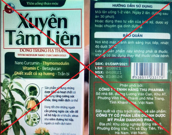 Bộ Y tế cảnh báo Thực phẩm bảo vệ sức khỏe Xuyên Tâm Liên giả mạo. Ảnh Cục ATTP