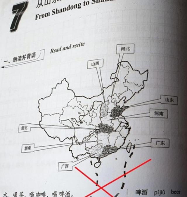 Ông Hoá cho biết, cuốn giáo trình có bản đồ "đường lưỡi bò" phi pháp xuất hiện trong bài 7 của cuốn sách "Developing Chinese" do Đại học Ngôn ngữ Bắc Kinh phát hành. Cuốn sách này do phía đối tác Trung Quốc tặng các giảng viên, sinh viên nhà trường khi đoàn sang Trung Quốc.