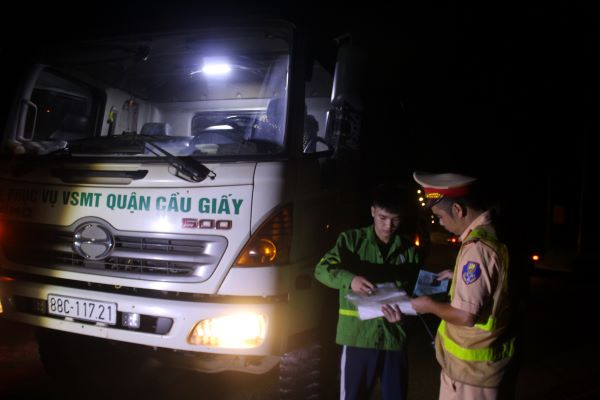 Tổ công tác đã dừng kiểm tra xe chở rác mang BKS 29C-739.xx do tài xế Lê Quang H. (ở Nam Sơn, Sóc Sơn) điều khiển xe chở rác hướng từ Quốc lộ 2 đi Khu liên hợp xử lý chất thải Nam Sơn. Sau khi kiểm tra giấy tờ cán bộ CSGT trong tổ phát hiện nước rò rỉ từ xe chở rác. Tổ công tác đã lập biên bản xử lý vi phạm hành chính chở chất thải để nước chảy xuống mặt đường gây mất an toàn giao thông và vệ sinh môi trường.