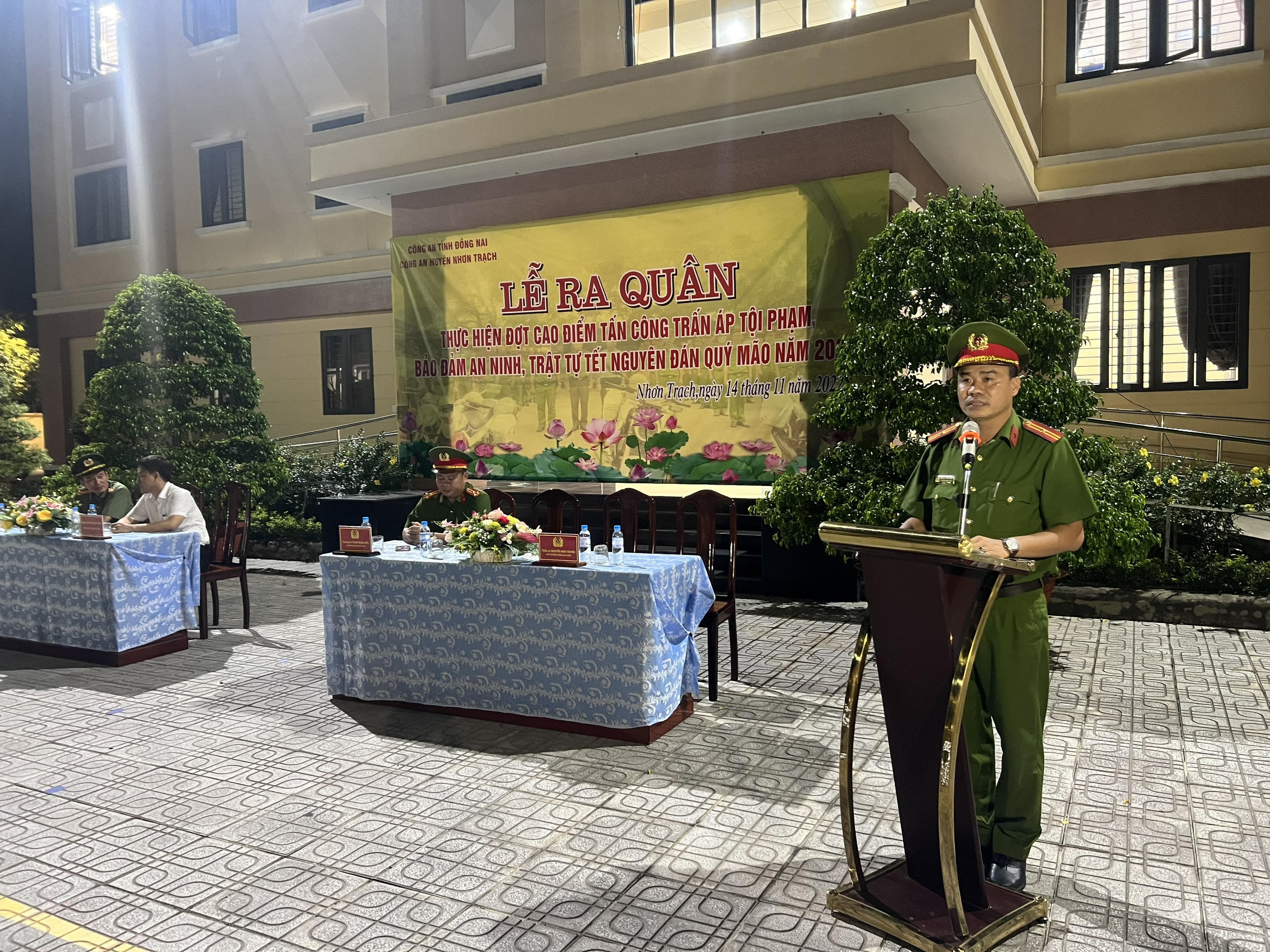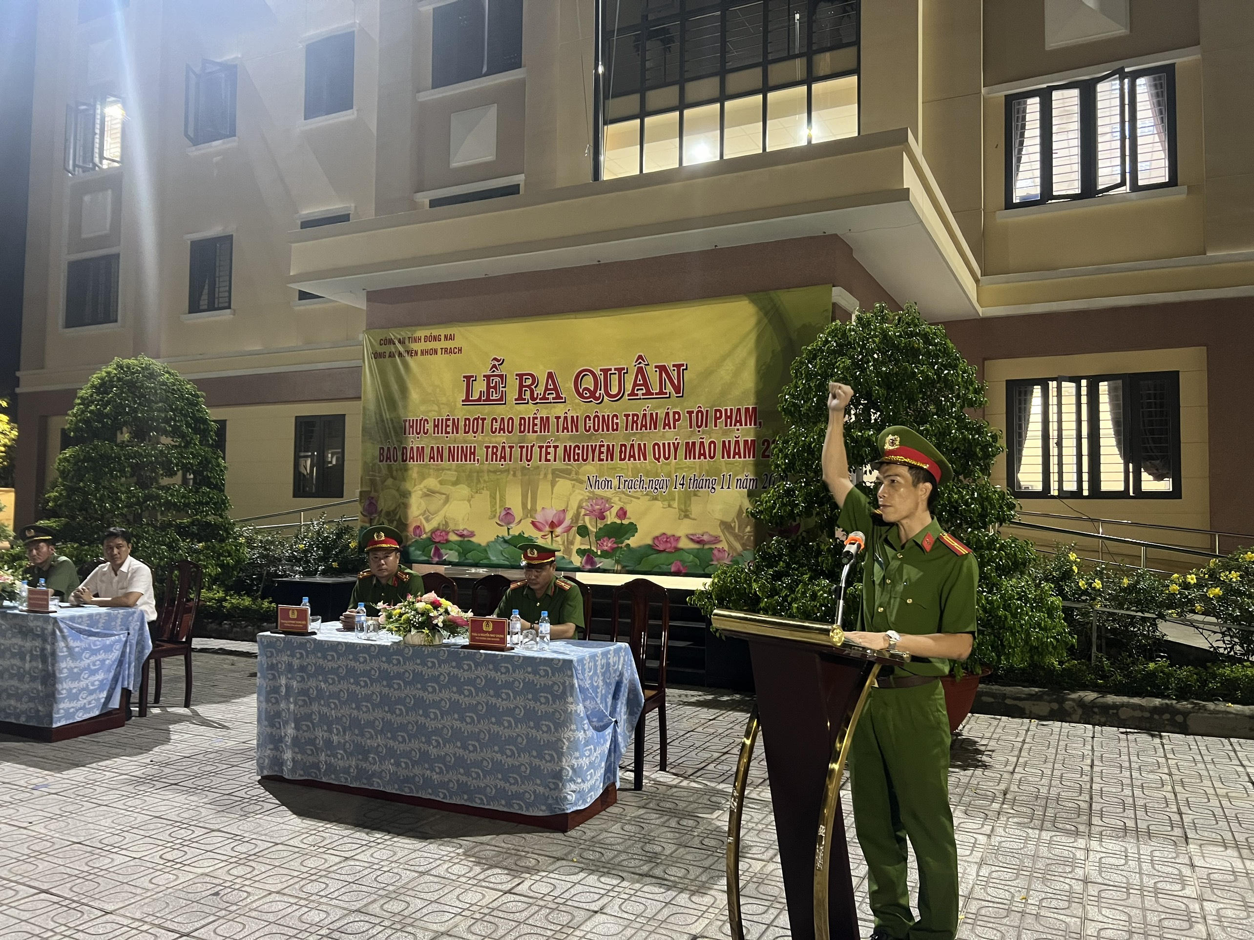Phát biểu tại lễ ra quân, lãnh đạo Công an huyện Nhơn Trạch nhấn mạnh rằng công an địa phương cần nâng cao tinh thần trách nhiệm, chấp hành nghiêm kỷ luật, kỷ cương, quy trình, chế độ công tác; chủ động bám địa bàn, thực hiện nghiêm mọi kế hoạch, mệnh lệnh.
