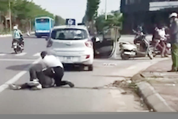 Sau đó, trên mạng xuất hiện một clip ghi lại cảnh, tài xế taxi một mình vật lộn với tên cướp. Còn hình ảnh một người mặc quần công an đứng ngay bên cạnh chỉ bấm điện thoại.