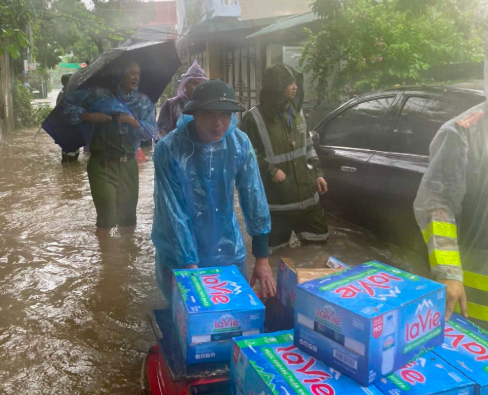 Bên cạnh đó, chỉ huy đơn vị cũng cùng chúng tôi có mặt trực tiếp tại hiện trường các khu vực trọng yếu có nguy cơ mất an toàn, ngập sâu trong thời gian dài để tiến hành cảnh báo và hướng dẫn người dân. Cùng với đó tiến hành phát nước và các nhu yếu phẩm cho bà con tại các khu vực ngập sâu cần hỗ trợ", cán bộ Công an phường Kiến Hưng cho biết thêm.