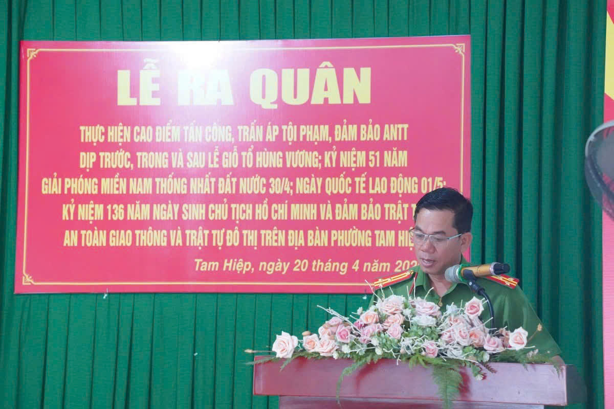 Công an phường Tam Hiệp (tỉnh Đồng Nai) vừa tổ chức Lễ ra quân thực hiện đợt cao điểm tấn công, trấn áp tội phạm, bảo đảm an ninh trật tự (ANTT) và trật tự an toàn giao thông (TTATGT), hướng tới phục vụ các ngày lễ lớn của đất nước như Giỗ tổ Hùng Vương, Ngày Giải phóng miền Nam 30/4, Ngày Quốc tế Lao động 1/5 và Ngày sinh Chủ tịch Hồ Chí Minh 19/5.