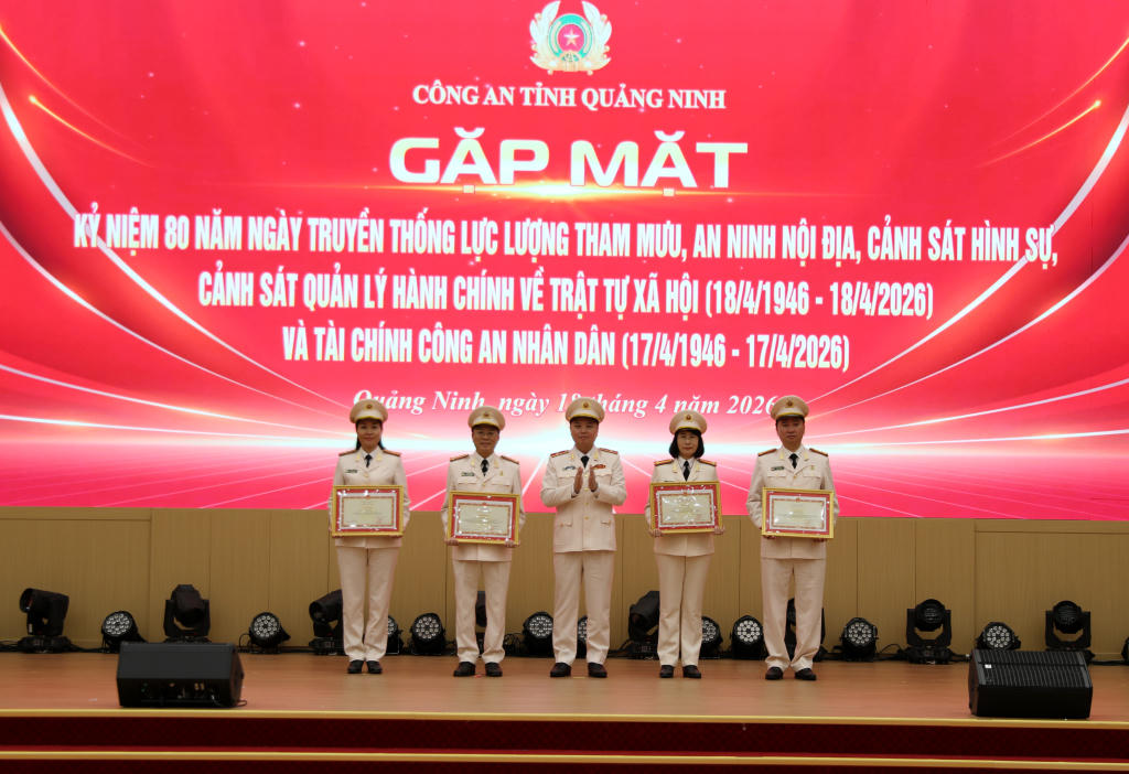 Ngày 18/4, tại Quảng Ninh, Công an tỉnh Quảng Ninh tổ chức lễ gặp mặt kỷ niệm 80 năm Ngày truyền thống của 5 lực lượng: Tham mưu, An ninh nội địa, Cảnh sát hình sự, Cảnh sát quản lý hành chính về trật tự xã hội (18/4/1946–18/4/2026) và Tài chính Công an nhân dân (17/4/1946–17/4/2026).
