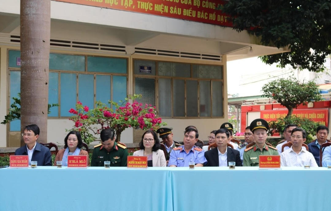 Cùng tham dự có các đồng chí, H Bă Mlô Phó Bí thư Thường trực Thị ủy, Chỉ huy Đội Chữa cháy và PCCN số 2, Phòng PC07 Công an tỉnh, Chỉ huy Trạm CSGT Krông Buk( thuộc Phòng CSGT Công an tỉnh Đắk Lắk), lãnh đạo Đội QLTT số 4, lãnh đạo Chi cục thuế Buôn Hồ- Krông Năng, Đội KLCĐ số 3, các ông Phó trưởng Ban Chỉ đạo 138 của thị xã; đại diện các phòng, ban, ngành của thị xã và lãnh đạo các phòng chuyên môn, cùng đông đảo cán bộ, chiến sĩ các đơn vị của Công an thị xã.