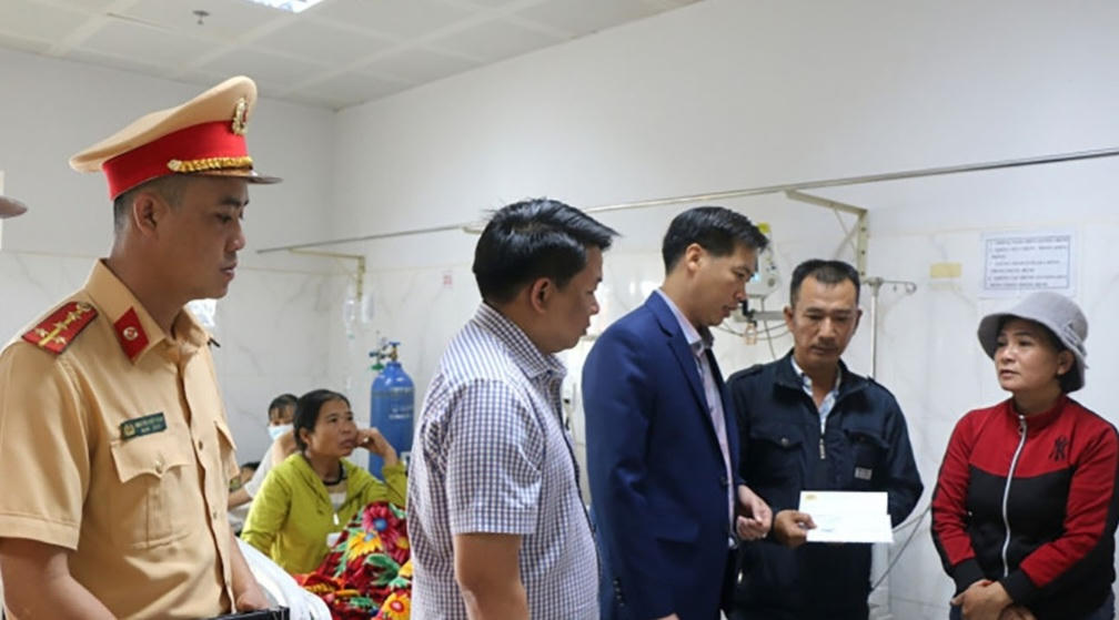 Sáng 26/1, Đại diện Công an thị xã Buôn Hồ (tỉnh Đắk Lắk), Trung tá Nguyễn Danh Bằng, Trưởng Công an thị xã đến Bệnh viện Đa khoa vùng Tây Nguyên (TP Buôn Ma Thuột) thăm hỏi gia đình nạn nhân bị tai nạn vào ngày mùng 3 Tết Quý Mão.