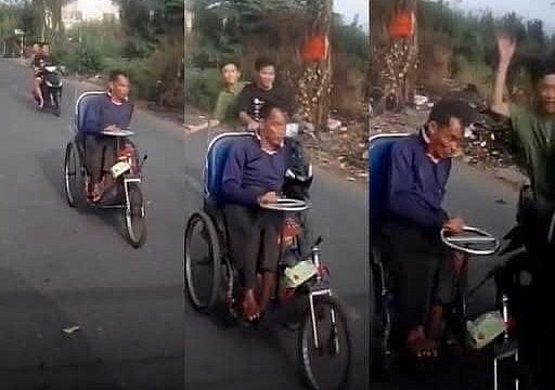 Tối 17/2, Công an xã Đạo Thạnh, TP. Mỹ Tho, tỉnh Tiền Giang đã triệu tập 2 đối tượng đi sau lưng, tát vào đầu người đàn ông tàn tật đang đi xe lăn trên đường Hồ Văn Nhánh hướng ra quốc lộ 60, TP. Mỹ Tho, tỉnh Tiền Giang, xảy ra chiều 16/2.