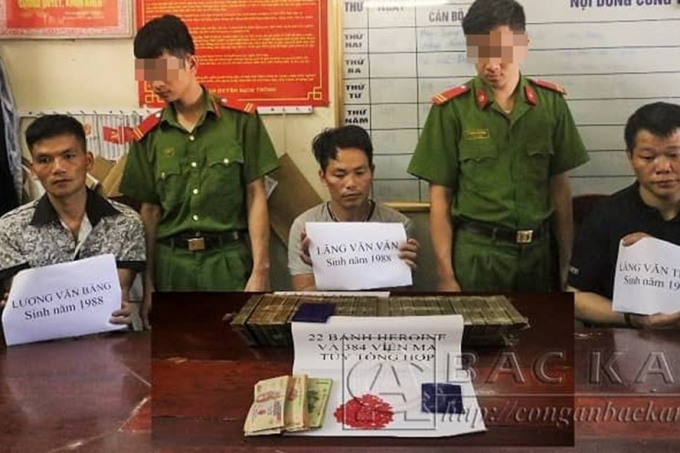 Ba bị cáo thời điểm bị bắt trong vụ án vận chuyển ma túy. Ảnh: Công an cung cấp