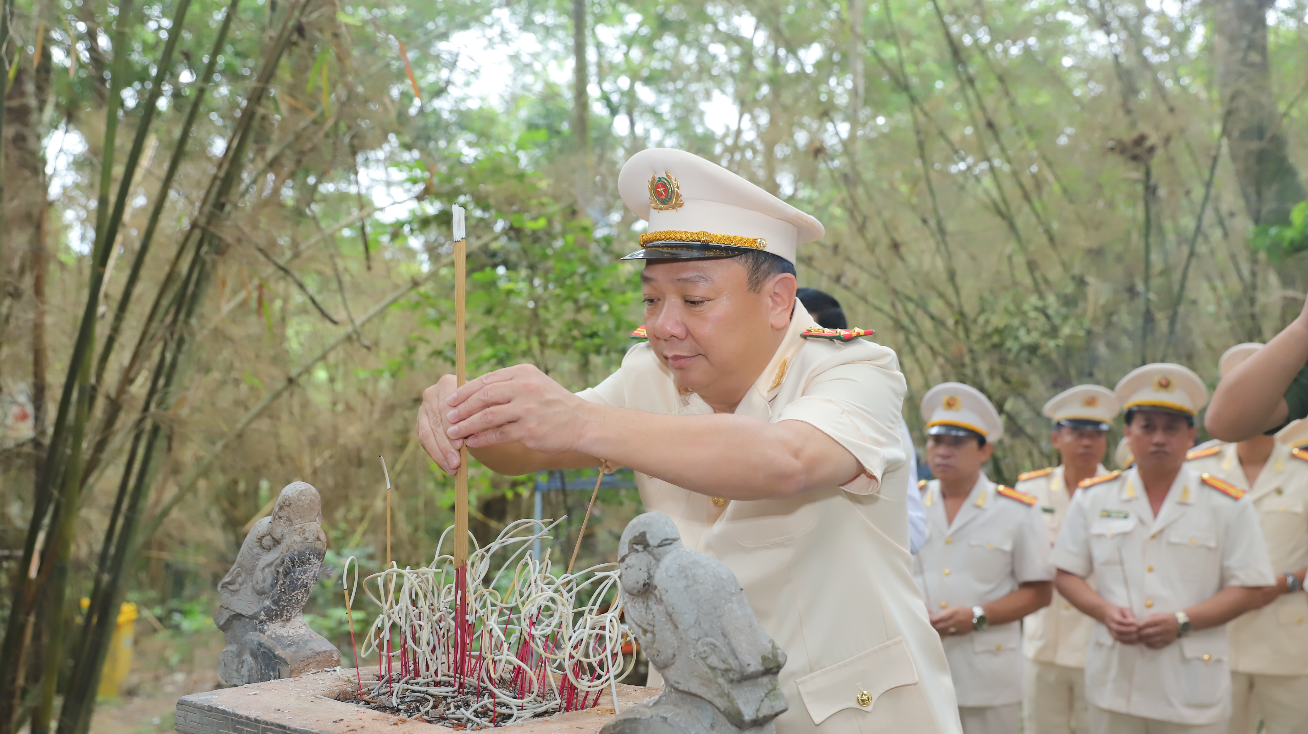 Đại tá Lê Quang Nhân, Uỷ viên BTV Tỉnh uỷ, Bí thư Đảng ủy, Giám đốc Công an tỉnh Bình Thuận dâng hương tại trước anh linh Chủ tịch Hồ Chí Minh vĩ đại, các Anh hùng liệt sỹ CAND.Tham dự cùng đoàn còn có ông Nguyễn Thanh Nam - Trưởng Ban Tổ chức tỉnh ủy Bình Thuận, bà Trần Thị Tuyết Hồng - Phó Trưởng ban Nội chính Tỉnh uỷ và đại diện các Ban Thường vụ Đảng ủy Công an tỉnh, lãnh đạo Công an các đơn vị, địa phương...Tiếp đoàn là Đại tá Phạm Kim Đĩnh - Uỷ viên BTV Tỉnh uỷ, Bí Thư Đảng Uỷ, Giám đốc Công an tỉnh Tuyên Quang.