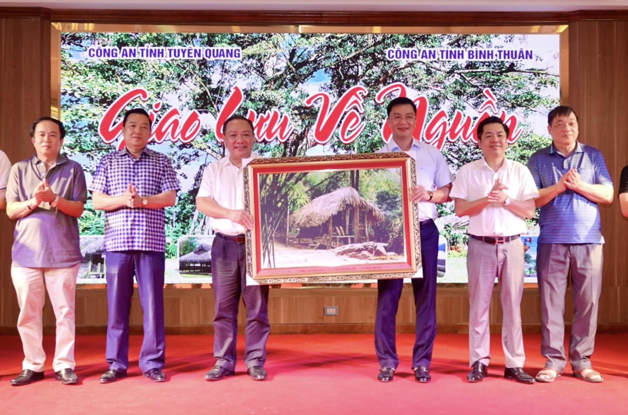 Lãnh đạo, cán bộ Công an tỉnh Bình Thuận và Tuyên Quang chụp hình lưu niệm.Tại Khu di tích Nha Công an Trung ương, Đoàn đã thành kính dâng hương, dâng hoa trước anh linh Chủ tịch Hồ Chí Minh vĩ đại, các Anh hùng liệt sỹ CAND và tổ chức lễ báo công trước tượng đài bảo vệ an ninh Tổ quốc, tham quan và dâng hương quần thể khu di tích lịch sử Nha Công an Trung ương, khu di tích lịch sử cây đa Tân Trào, khu tưởng niệm các vị tiền bối, Đình Tân Trào, lán Nà Nưa, đây là nơi ở, nơi làm việc của Chủ tịch Hồ Chí Minh và các đồng chí lãnh đạo Đảng, Nhà nước trong những năm kháng chiến chống Pháp.