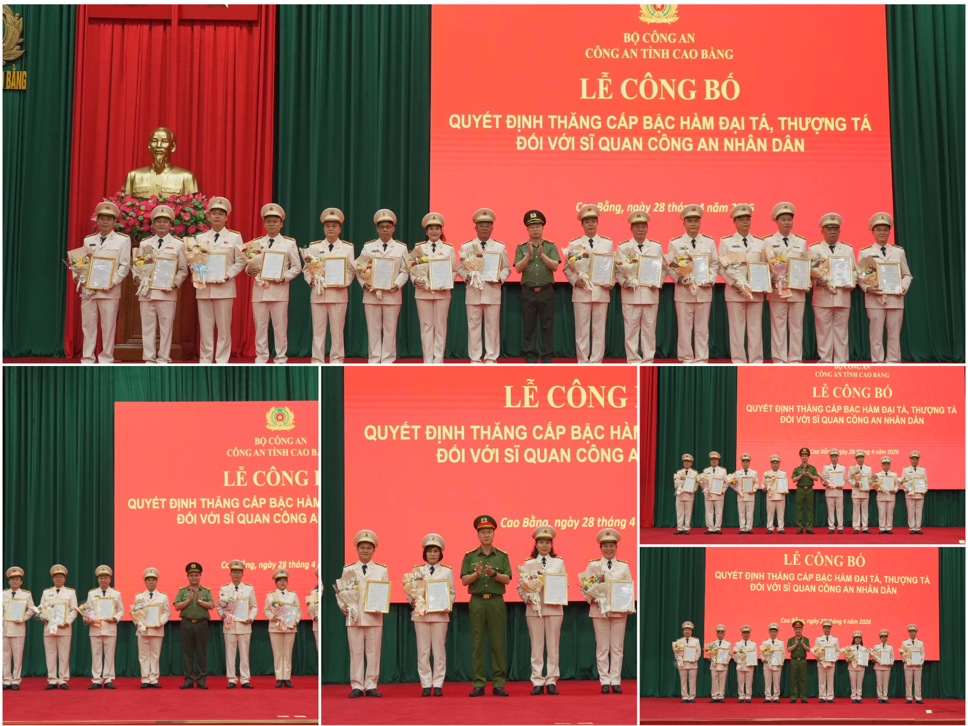 Chiều 28/4, Công an tỉnh tổ chức lễ công bố quyết định thăng cấp bậc hàm đại tá, thượng tá đối với sĩ quan Công an nhân dân năm 2026.