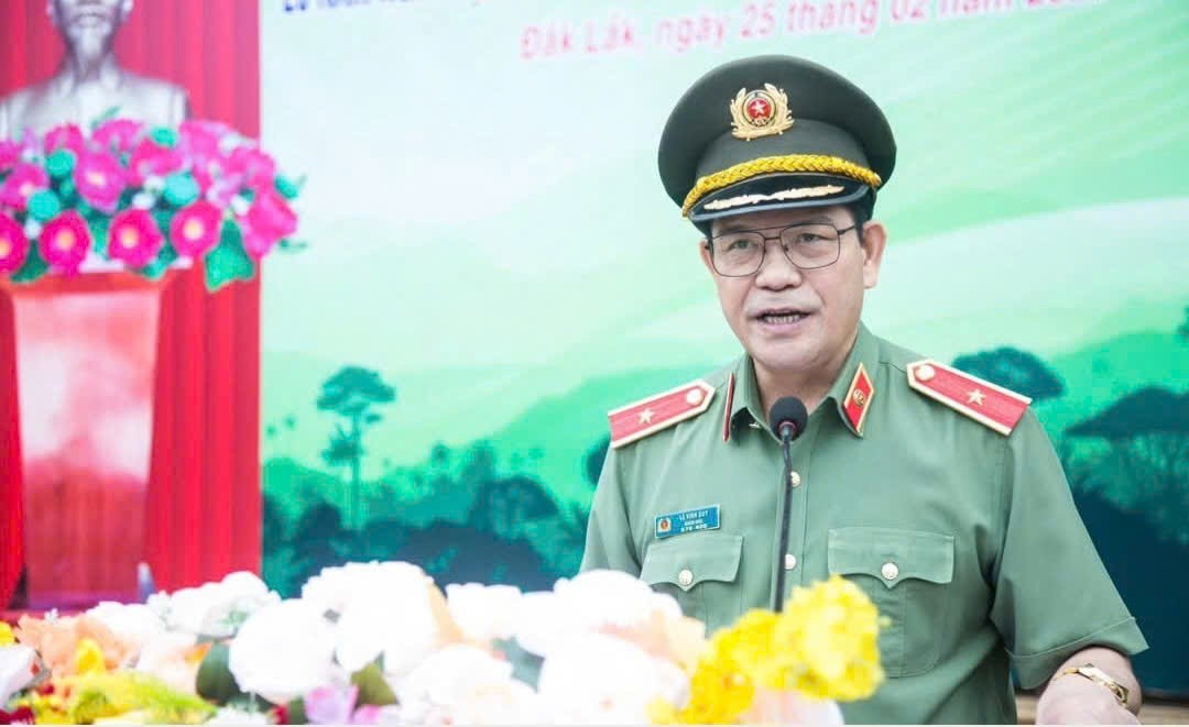 | Thiếu tướng Lê Vinh Quy, Giám đốc Công an tỉnh Đắk Lắk phát biểu chỉ đạo tại buổi lễ. Ảnh: Duy Hòa |