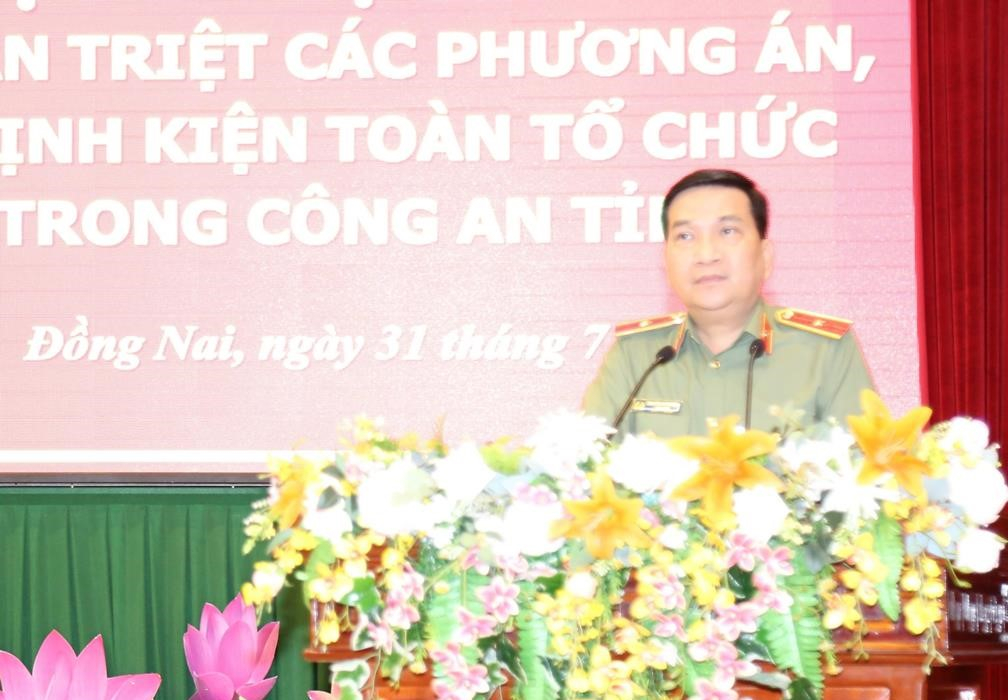 Thiếu tướng Nguyễn Sỹ Quang - Uỷ viên Ban Thường vụ Tỉnh uỷ, Bí thư Đảng uỷ, Giám đốc Công an tỉnh Đồng Nai phát biểu chỉ đạo. (Ảnh: Công an Đồng Nai).