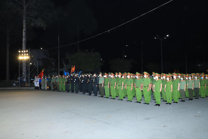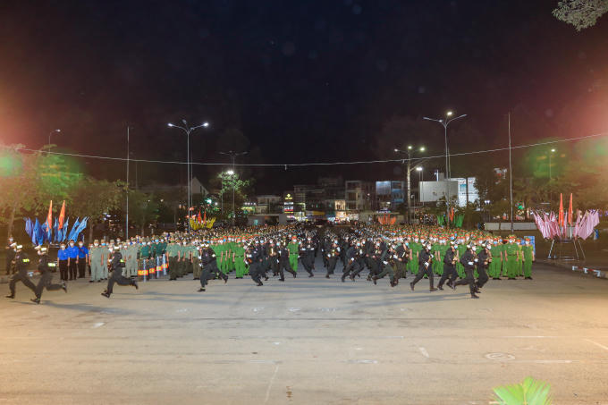 Lực lượng Công an ra quân thực hiện nhiẹm vụ trong đêm.