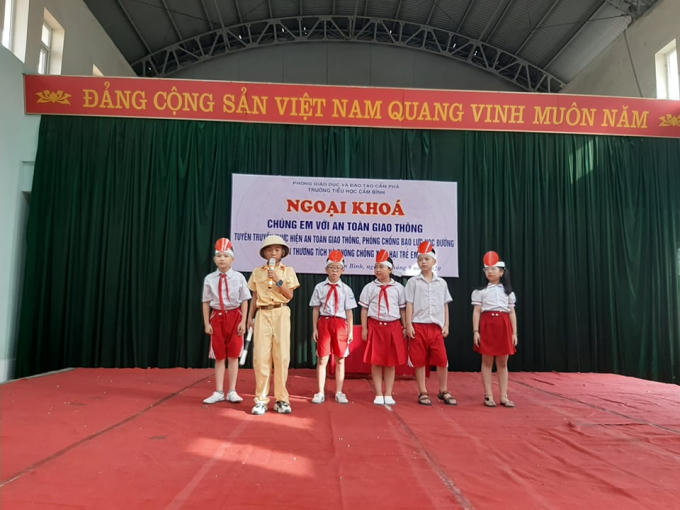 Tại buổi tuyên truyền, các em học sinh và giáo viên nhà trường được nghe cán bộ Đội CSGT-TT Công an TP. Cẩm Phả, tỉnh Quảng Ninh trao đổi những kiến thức cơ bản về ATGT, hành vi thường vi phạm dẫn đến tai nạn giao thông, đồng thời hướng dẫn cách đội mũ bảo hiểm đảm bảo an toàn, kỹ năng điều khiển xe đạp, xe đạp điện khi tham gia giao thông.