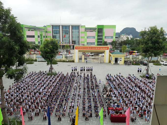 CA TP Cẩm Phả đang phổ biến giáo dục pháp luật đến với hàng nghìn học sinh.