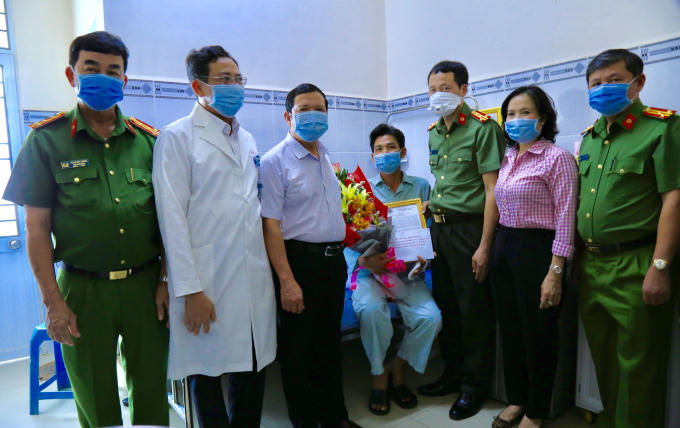 Đại tá Vũ Hồng Văn - Giám đốc Công an tỉnh Đồng Nai đã thay mặt Bộ trưởng Tô Lâm trao Thư khen và số tiền 5 triệu đồng cho đồng chí Hoàng Quốc Sự vì có thành tích không sợ hiểm nguy, dũng cảm tấn công trấn áp tội phạm.