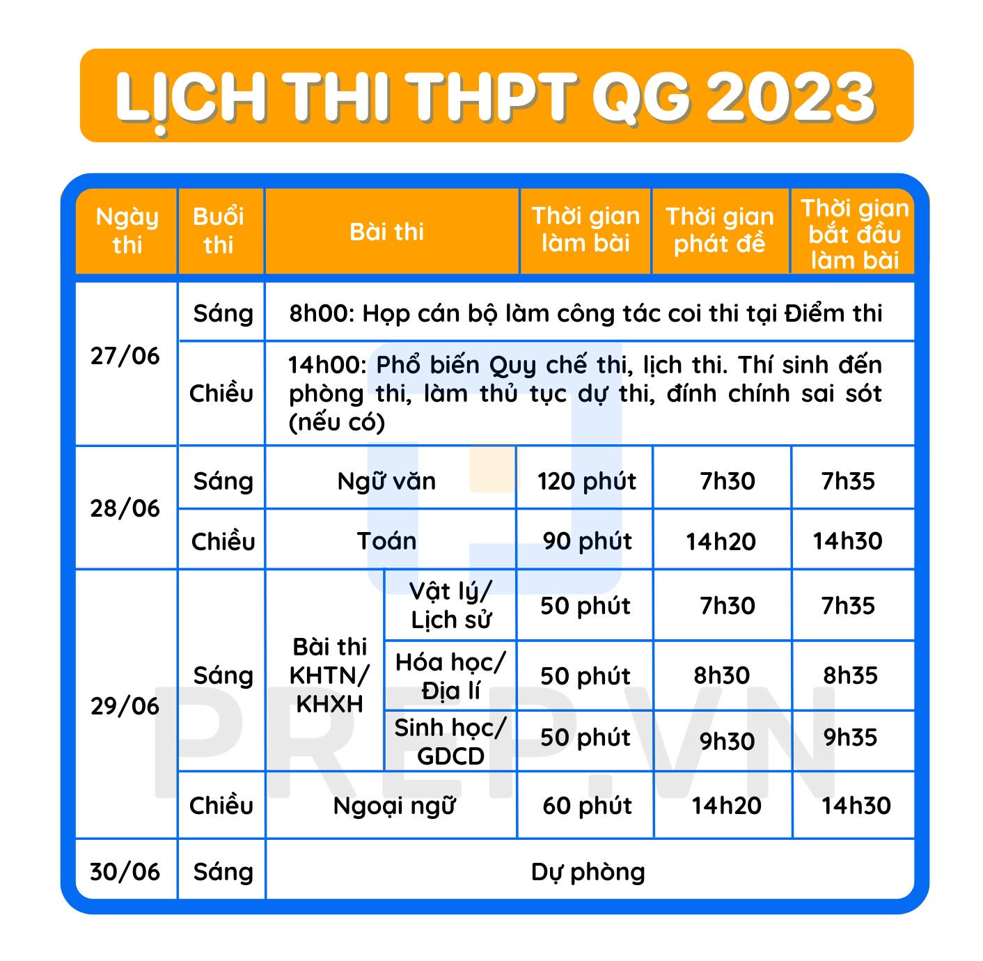 Theo đó, kỳ thi được tổ chức vào các ngày 27, 28, 29 và 30/6/2023. Lịch thi chi tiết được Bộ GD&ĐT công bố trong hướng dẫn tổ chức Kỳ thi tốt nghiệp THPT năm 2023.