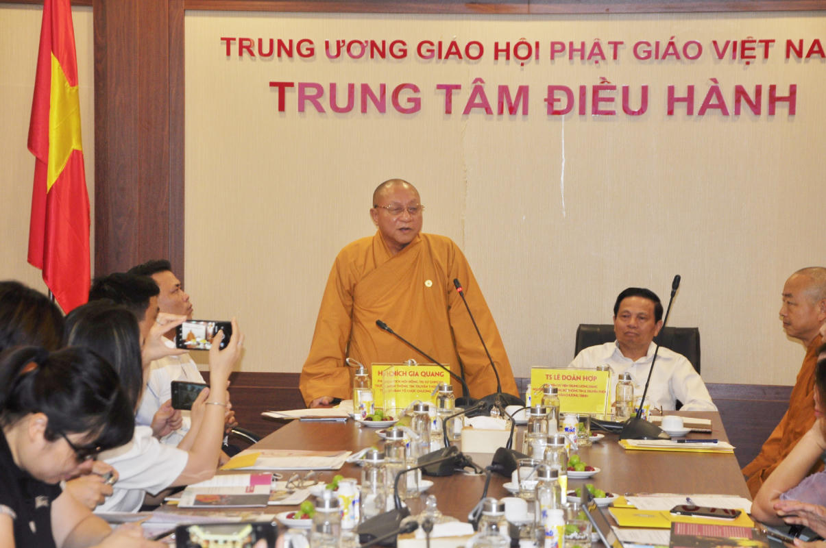 Hòa thượng Thích Gia Quang - Phó Chủ tịch Hội đồng Trị sự, Trưởng Ban Thông tin truyền thông Trung ương Giáo hội Phật giáo Việt Nam, Trưởng ban Tổ chức, thông tin về chương trình “Vu Lan - Đạo hiếu và dân tộc năm 2023”.